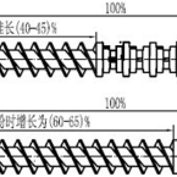 ②整體式螺杆可分爲部分螺紋外圓直徑完全相同的圓柱形螺杆和部分外圓直徑逐漸減小的圓錐形螺杆。圓筒形螺杆又分爲兩種,一種是由加料段到均化段螺距逐漸變小且螺紋距不變,另一種是由加料段到均化段螺紋棱寬度逐漸增大。